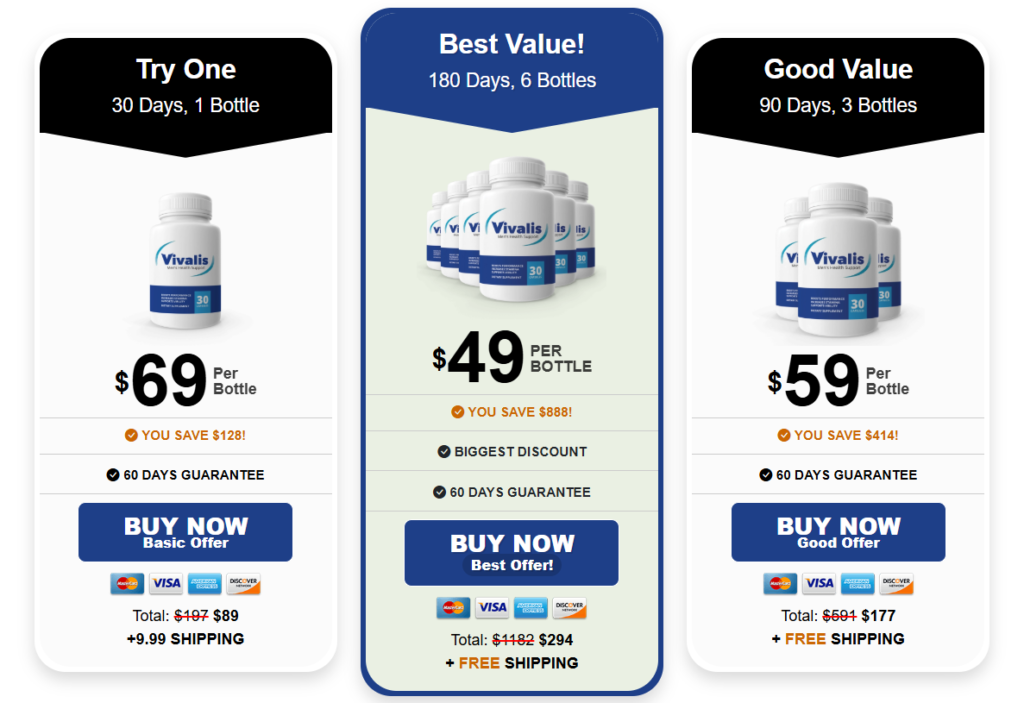Currently, VIVALIS is backed by a 60-day money-back guarantee, giving you ample time to try it risk-free. Free shipping is also available on select multi-bottle packages, along with exclusive discounts for new customers.